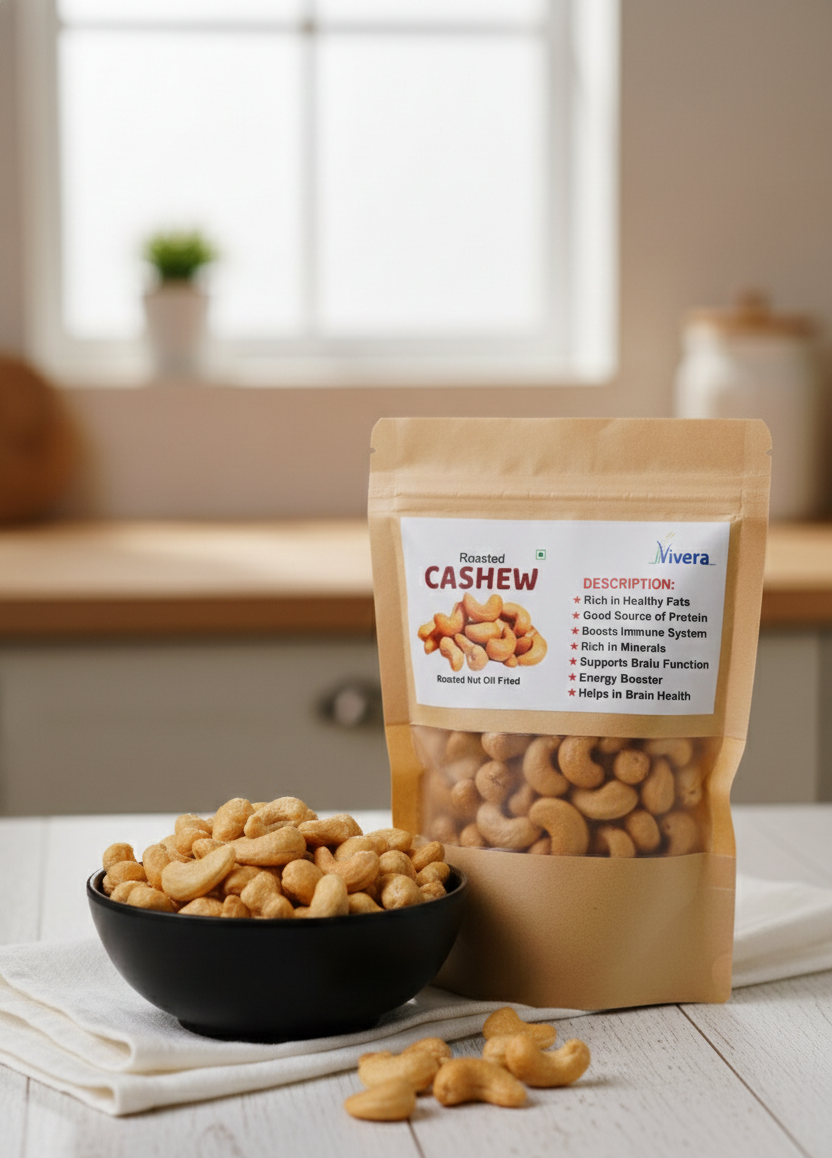Plain dry-roasted cashews with natural nutty taste